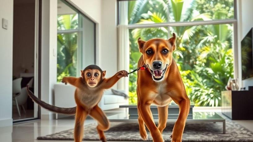 Macaco invade casa em Bertioga e é perseguido por um cão de luxo no Brasil